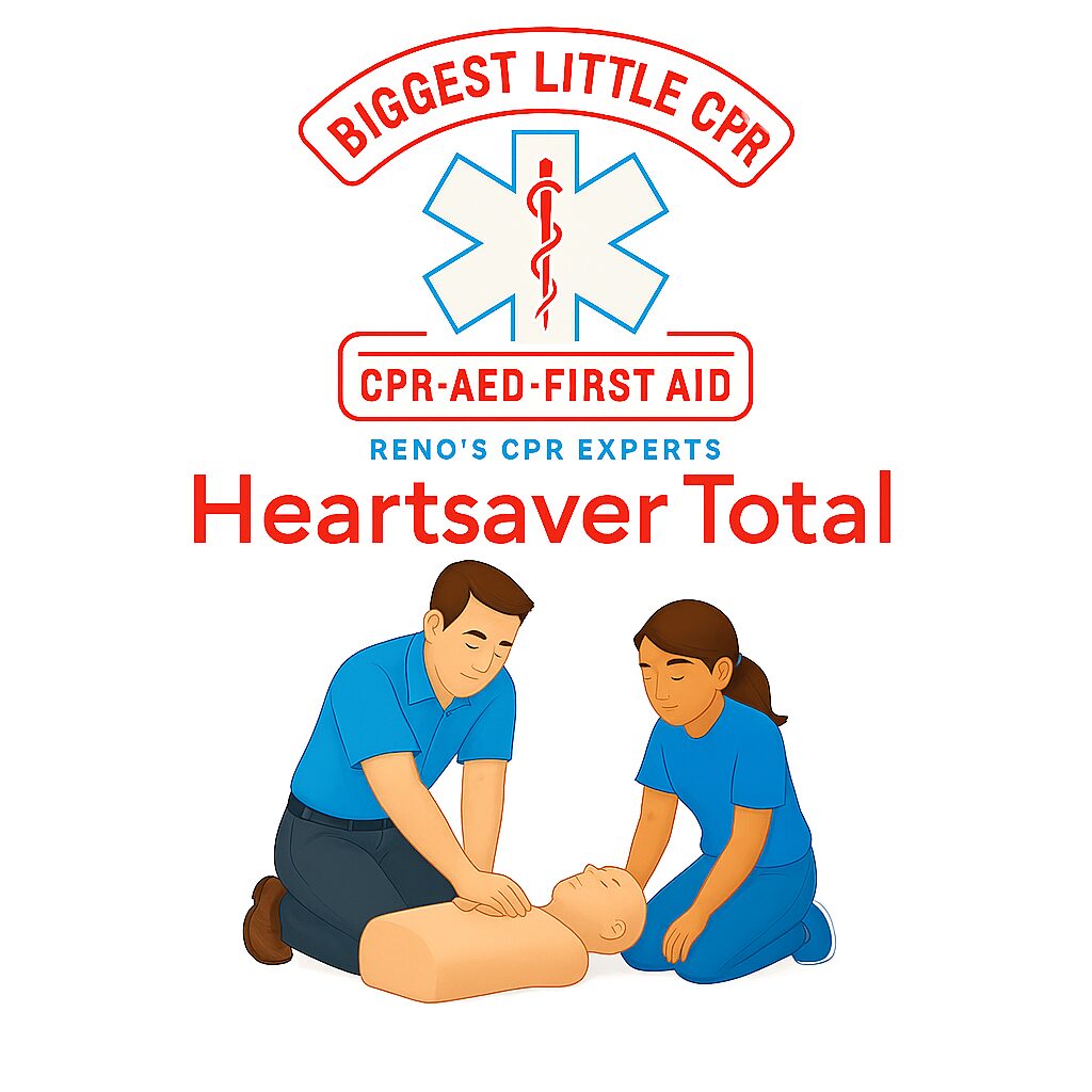 The Heartsaver Total course is designed for individuals with little or no medical training who need first aid, CPR, and AED training. It covers lifesaving skills such as recognizing cardiac arrest, performing CPR, and using an AED.