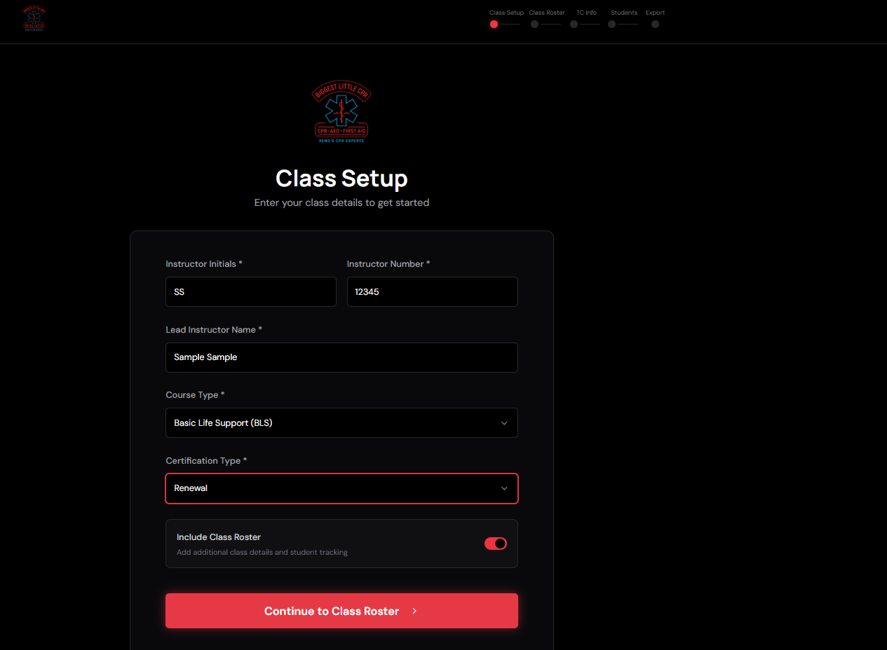 - Lightning-Fast Roster: Stop manually filling out forms. Simply enter a few pieces of core student and course information, and Biggest Little CPR's Paperwork Generator instantly generates accurate, compliant post-course records, including rosters and grade reports, ready for submission.