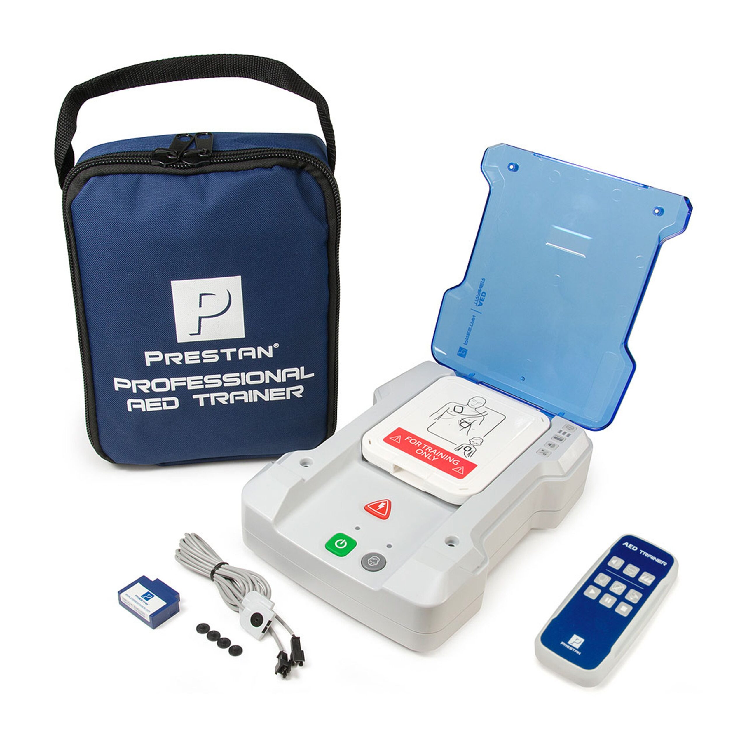 includes (1) set of Adult/Child Training Pads with Pad Sensing System, Pads Storage Case, AED Trainer PLUS Remote Control, Carry Bag and Instructions